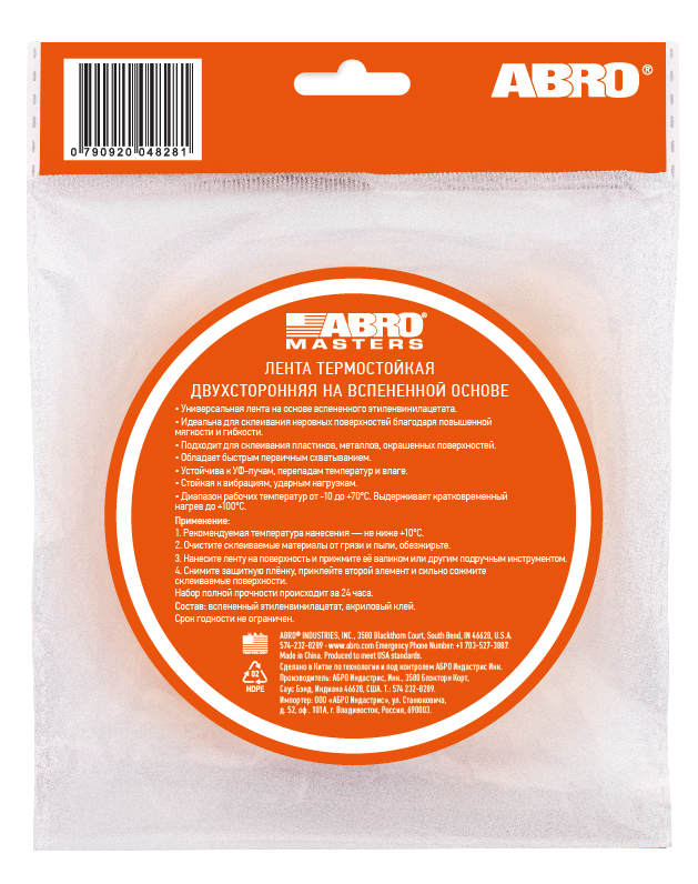 Лента клейкая двухсторонняя белая (12 мм х 10 м) ABRO MASTERS