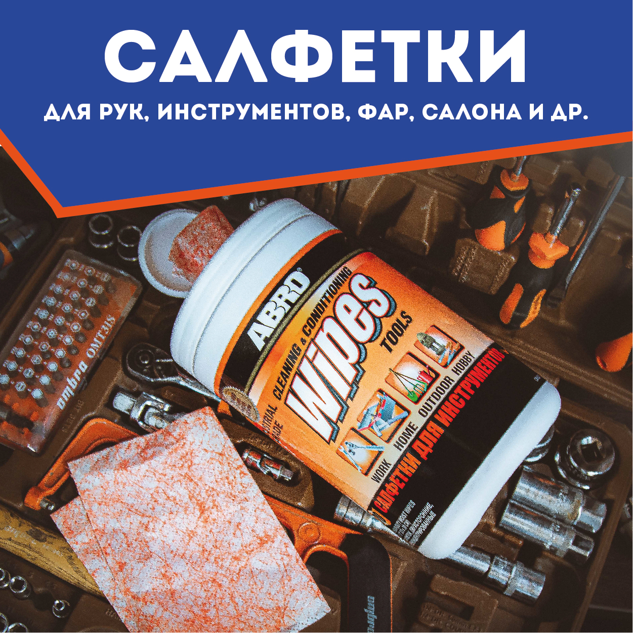 Салфетки влажные для фар, стёкол, зеркал ABRO |