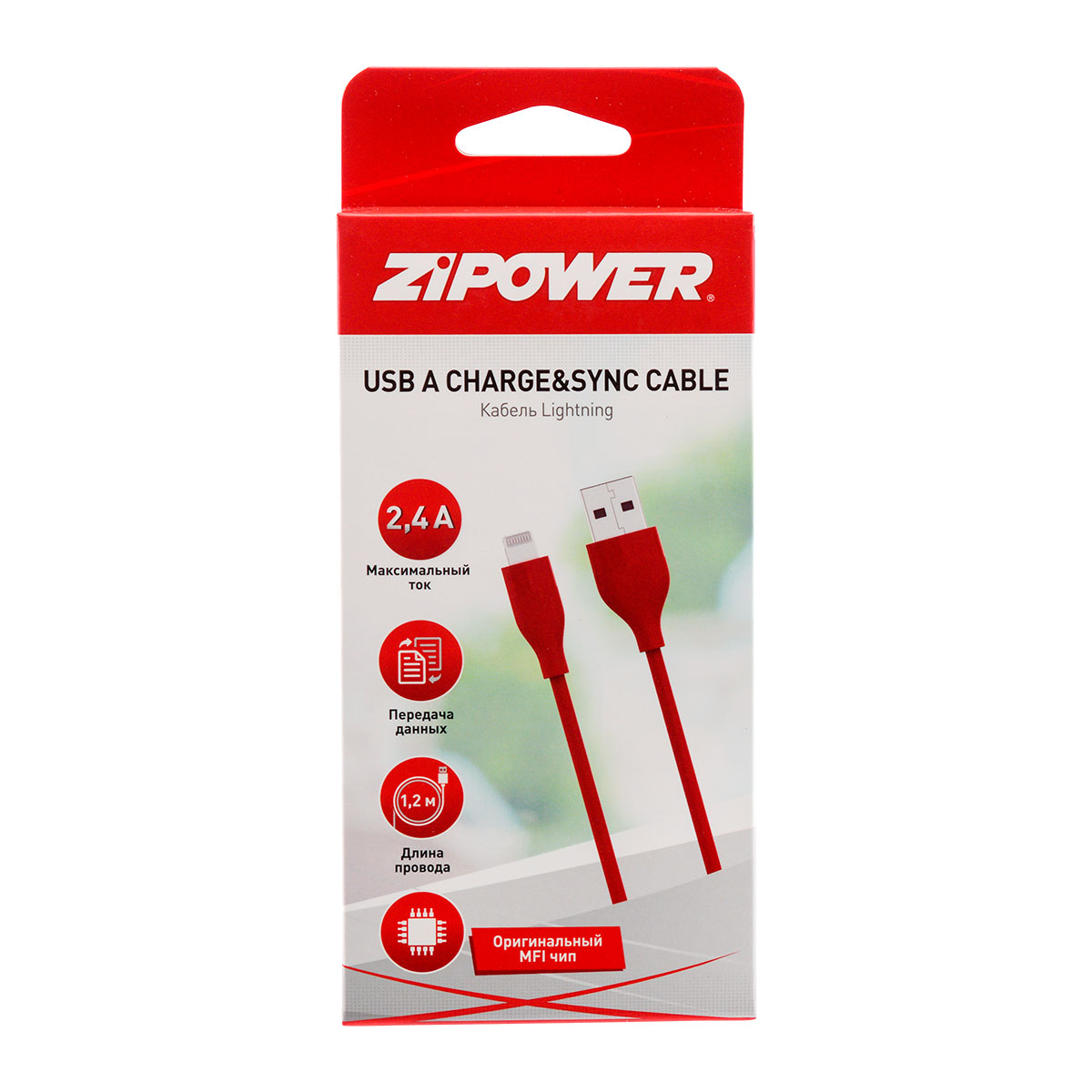 Кабель USB A Lightning, 100% совместимость с гаджетами Apple, 1,2м ZIPOWER PM6655