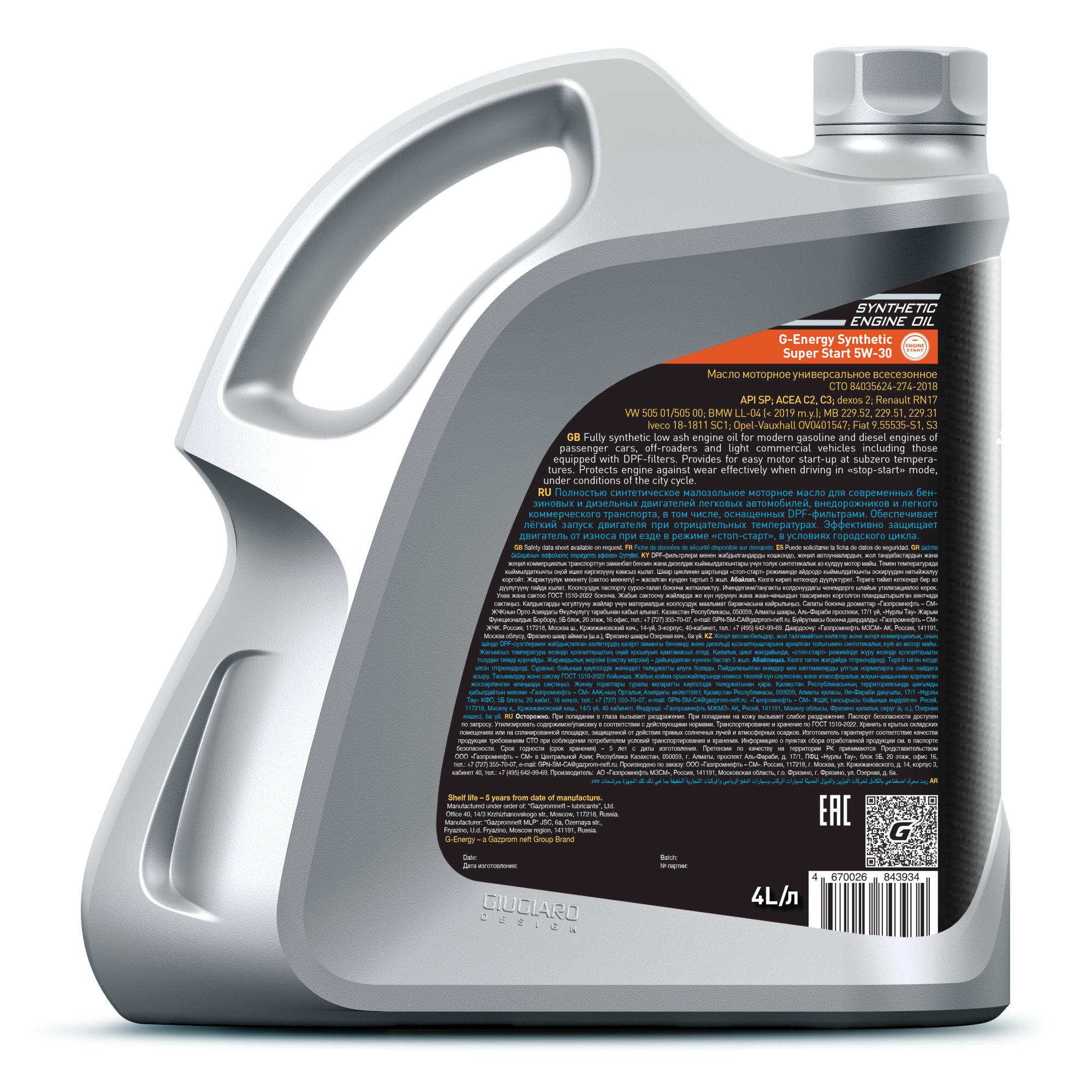 G-Energy Synthetic Super Start 5W-30 – синтетическое малозольное моторное масло на основе базовых компонентов G-Base с улучшенными низкотемпературными свойствами. Обеспечивает лёгкий запуск и надёжную защиту двигателя в широком диапазоне температур, в том числе при эксплуатации при низких температурах. Применимо для бензиновых и дизельных двигателей и совместимо с современными системами снижения токсичности выхлопных газов (в том числе c сажевыми фильтрами (DPF) и катализаторами (TWC)).