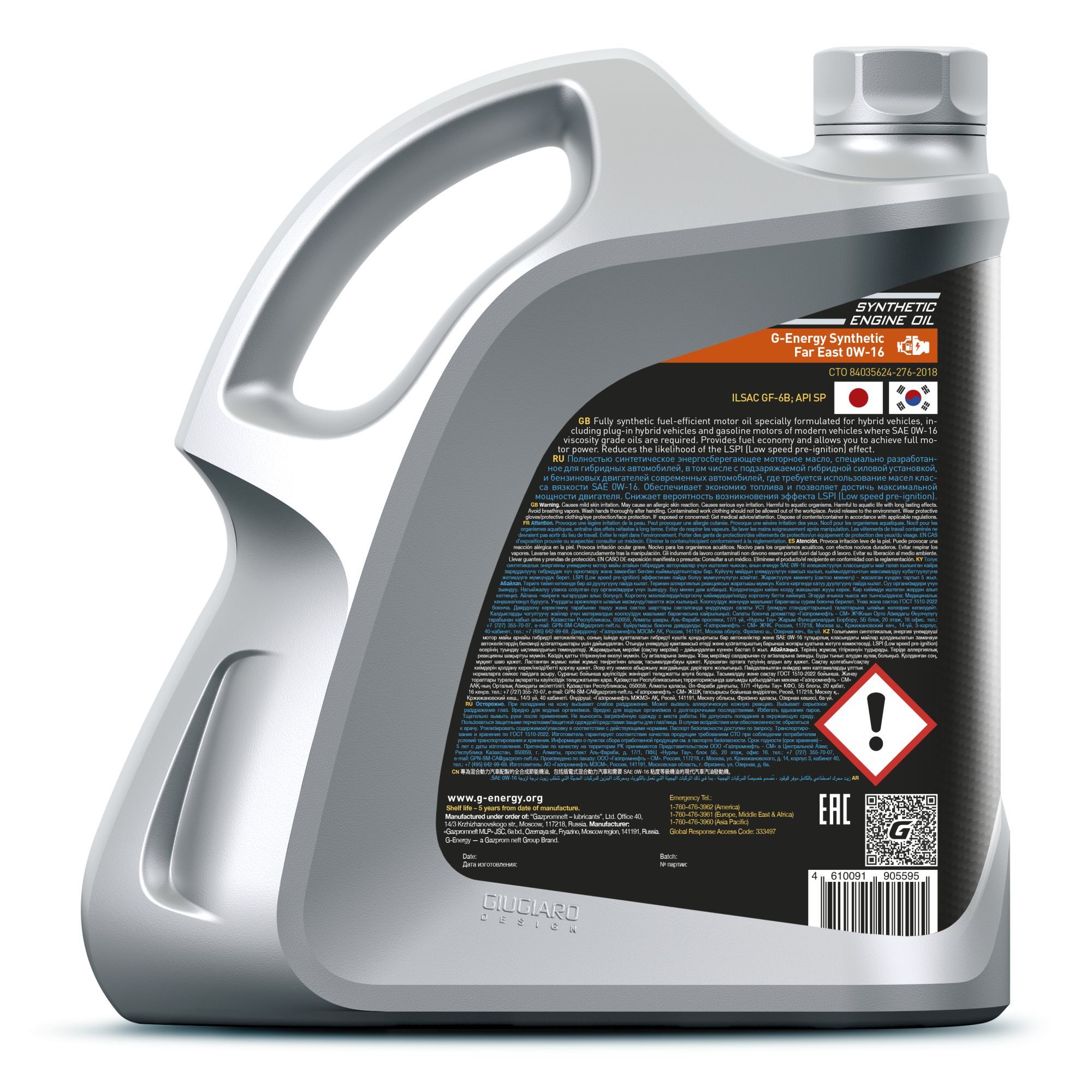 Синтетическое энергосберегающее моторное масло, специально разработанное для гибридных автомобилей, в том числе с подзаряжаемой гибридной силовой установкой, и бензиновых двигателей современных автомобилей, где требуется использование масел класса вязкости SAE 0W-16. Обеспечивает экономию топлива и позволяет достичь максимальной мощности двигателя. Снижает вероятность возникновения эффекта LSPI (Low speed pre-ignition)